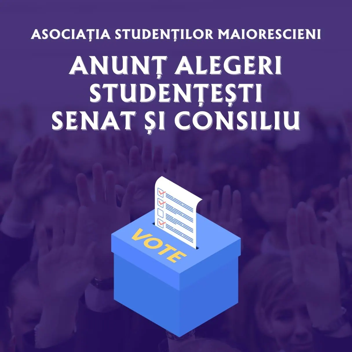 - Primul Tur de alegeri studențești pentru alegerea Studenților reprezentanți în Consiliul Facultății de Medicină (Procedura se reorganizează din pricina unui viciu procedural, conform Calendarului de Alegeri modificat, postat pe site-ul UTM, în secțiunea destinată Asociației Studenților Maiorescieni)