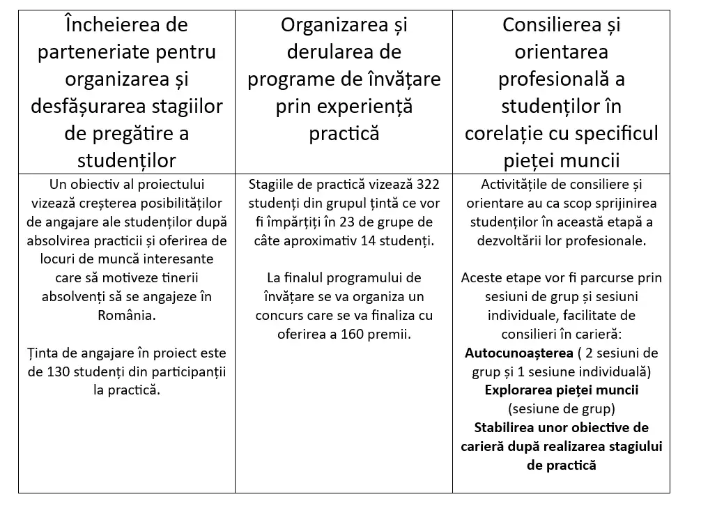 - Stagiu de practică pentru cei 322 de studenți selectați din grupul țintă