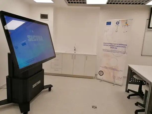 - Acces la cursuri de formare și training într-o varietate de medii simulate precum: camera de urgență, ATI, sala de operații, sala de nașteri, saloane de recuperare, urgențe la domiciliu, urgențe în spații publice, transport în ambulanță – LifeSIM ( click aici!).