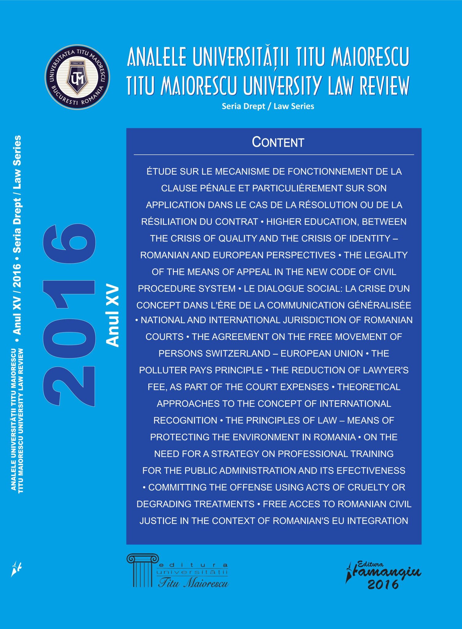 Analele Universității Titu Maiorescu Seria Drept