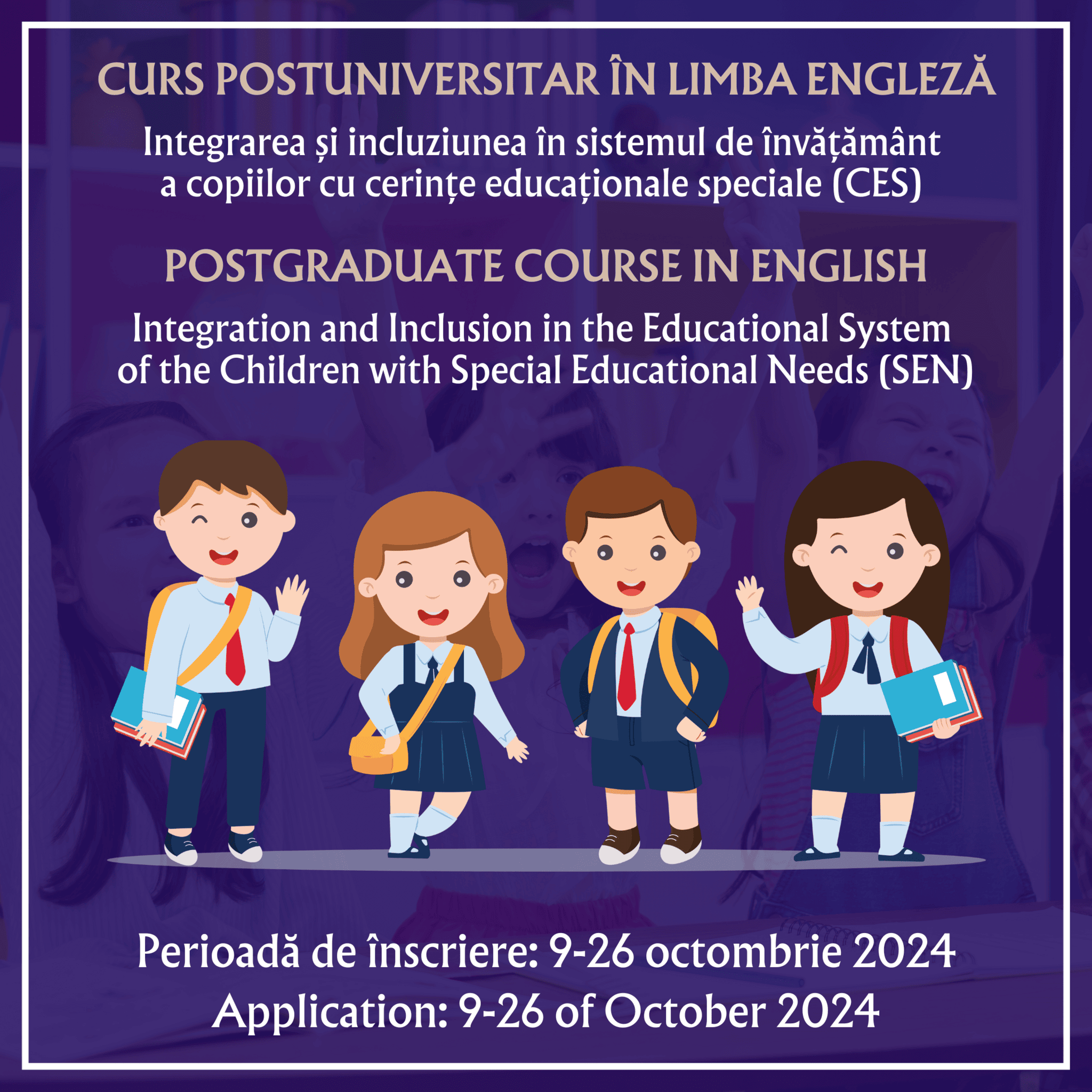 The Faculty of Educational Sciences, Communication and International Relations organizes, starting with the academic year 2024-2025, The Postgraduate Course in English Integration and Inclusion in the Educational System of the Children with Special Educational Needs (SEN).