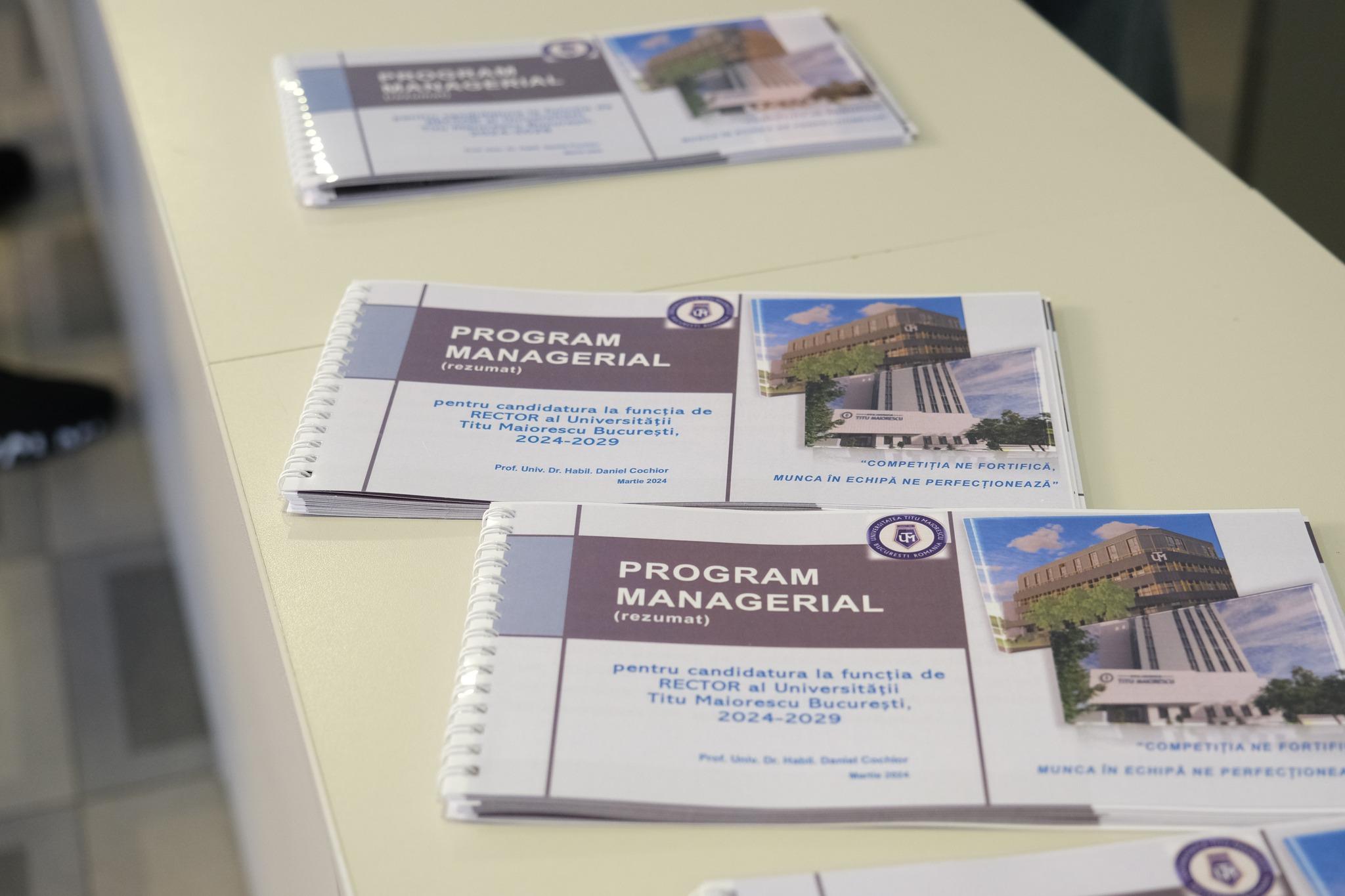 Miercuri, 20 martie 2024 a avut loc dezbaterea publică a Programului Managerial al Candidatului la funcția de Rector cu întreaga comunitatea academică UTM, în baza Metodologiei privind procesul de constituire și de alegere a structurilor și funcțiilor de conducere din Universitatea Titu Maiorescu pentru perioada 2024-2029, conform anexei 1 – Calendarul constituirii și alegerii structurilor și funcțiilor de conducere din UTM, 2024-2029.