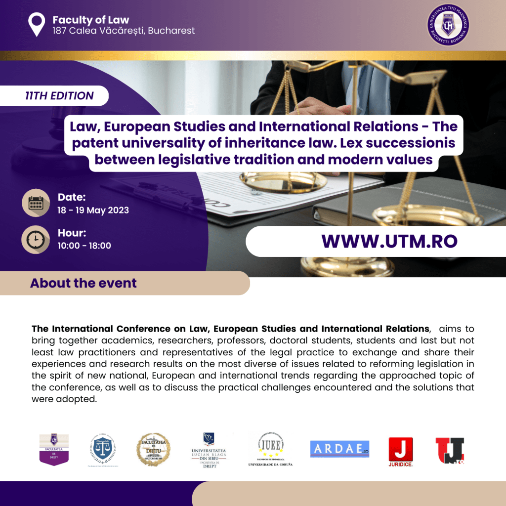 „Drept, Studii Europene şi Relaţii Internaţionale – Universalitatea patentă a dreptului succesoral. Lex succesionis între tradiție legislativă și valori moderne”