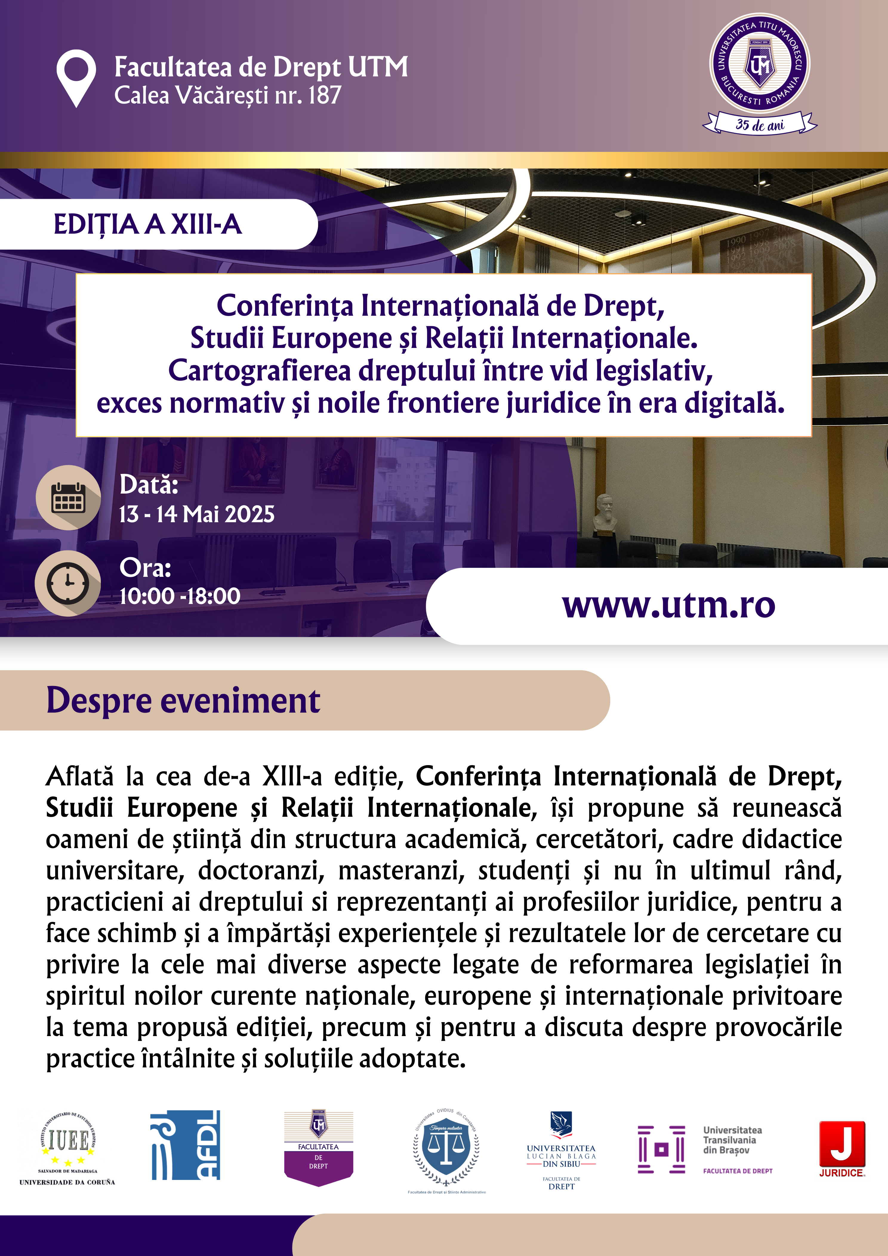 • Desfășurarea Conferinței: 13-14 mai 2025.