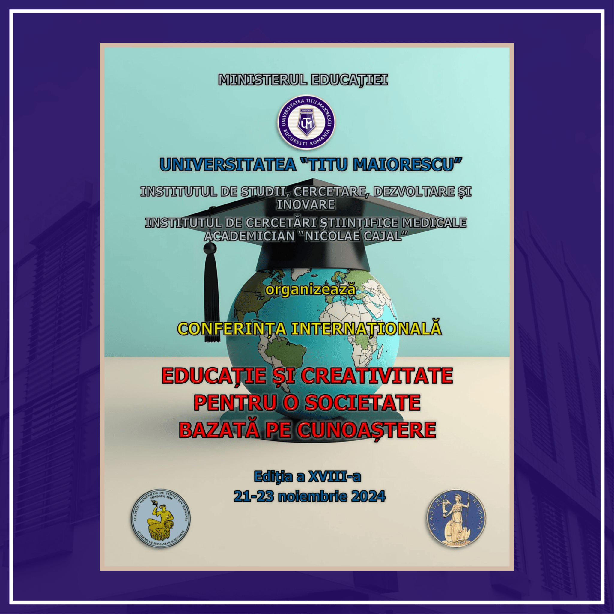 În ziua de 21 noiembrie 2024, în Aula Magna a Universității Titu Maiorescu, a avut loc deschiderea lucrărilor celei de-a XVIII-a ediție a Conferinţei Internaţionale “Educaţie şi creativitate pentru o societate bazată pe cunoaştere”.