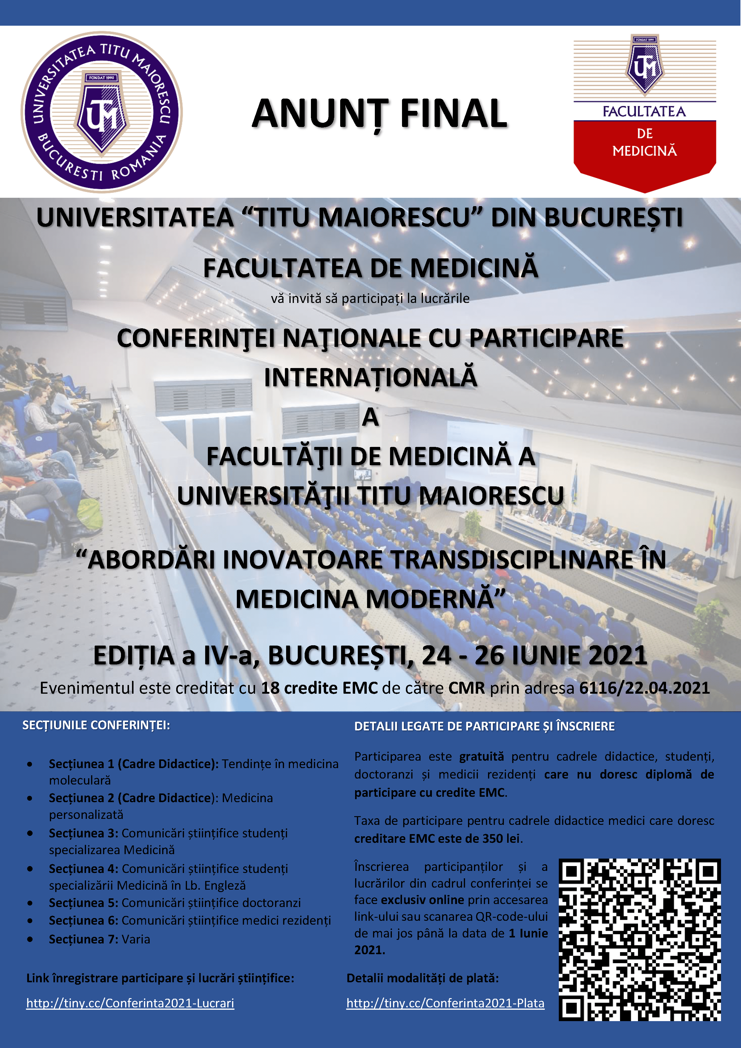 Evenimentul este creditat cu 18 credite EMC de către CMR prin adresa 6116/22.04.2021.
