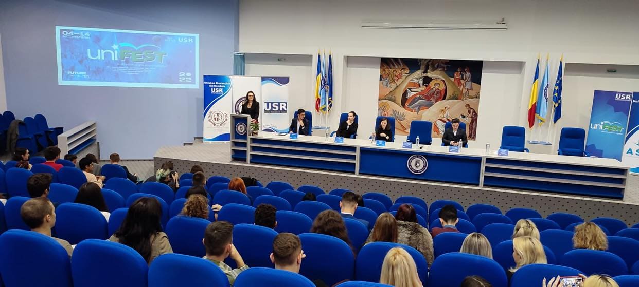 Viața de-adevăratelea” a fost tema introductivă din cadrul conferinței. Doamna Conf. Univ. Dr. Ioana Mânea, Prorector Relații Internaționale din cadrul Universității Titu Maiorescu din București, i-a provocat pe tinerii studenți să reflecteze asupra prezentului, dar și viitorului profesional și i-a determinat să acorde mai multă atenție acțiunilor lor zilnice care vizează alegerea carierei potrivite pentru viitor.