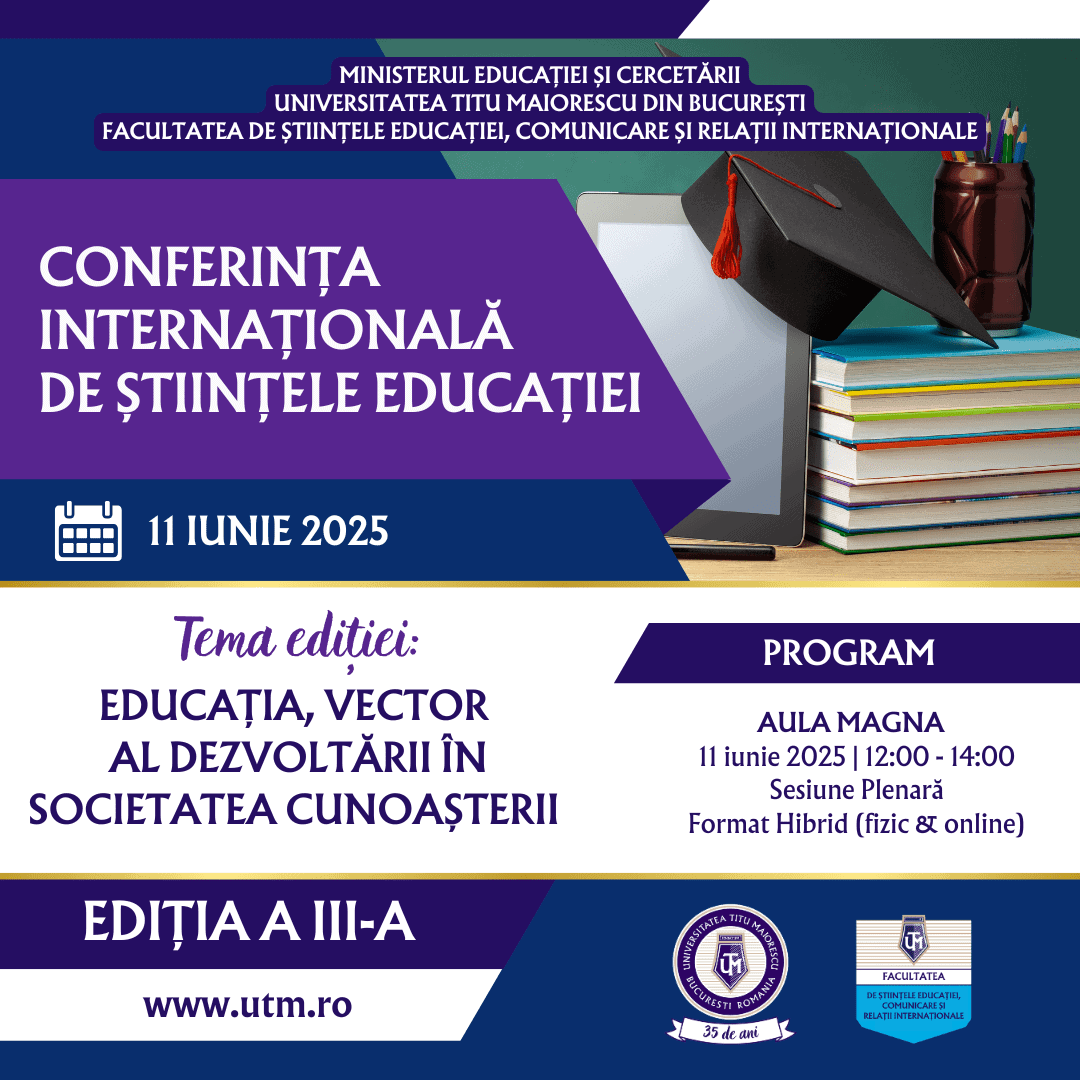 Conferința Internațională de Științele Educației Ediția a III-a, 11 Iunie 2025 Tema Ediției: Educația, vector al dezvoltării în Societatea Cunoașterii Format hibrid: fizic și