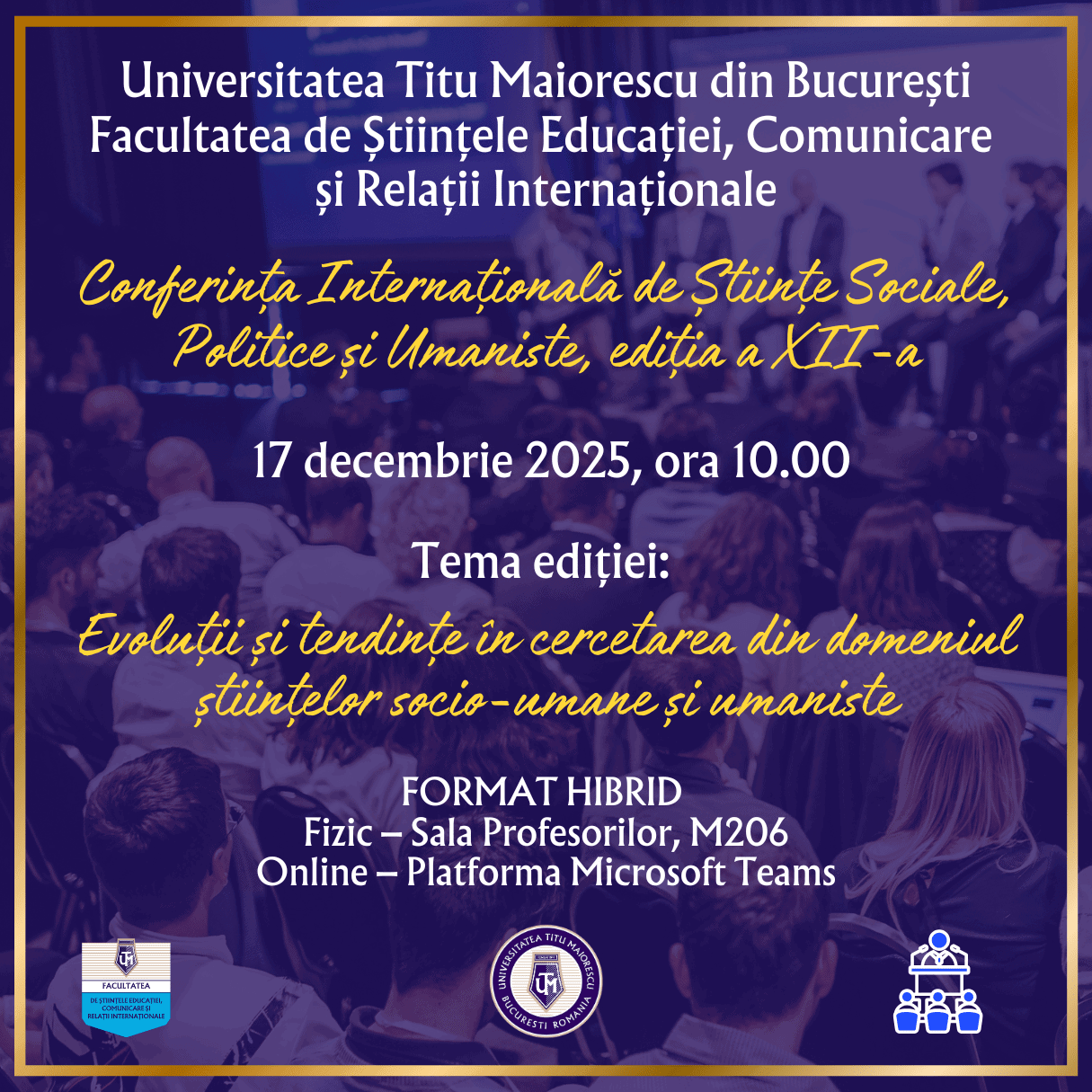 CONFERINȚA INTERNAȚIONALĂ DE ȘTIINȚE SOCIALE, POLITICE ȘI UMANISTE 17 Decembrie 2025, Ediția a XII-a Facultatea de Științele Educației, Comunicare și Relații Internaționale a