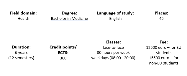 The 6-years study program in Medicine is completed by a bachelor’s exam (graduation exam).