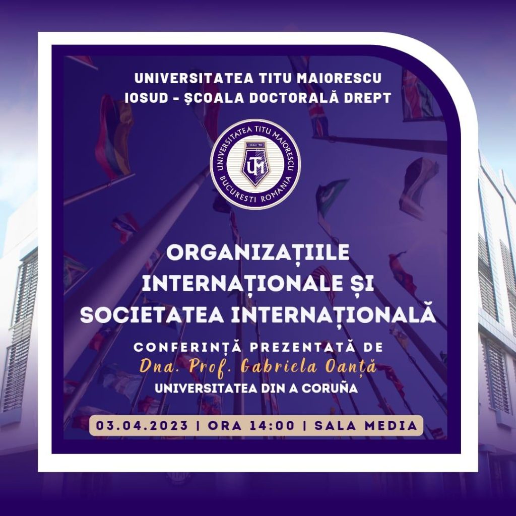 În ziua de 03.04.2023 ora 14 în clădirea universității din Calea Văcărești nr. 187 sala Multimedia va avea loc conferința cu titlul “Războiul în Ucraina o perspectivă a dreptului internațional “ prezentată de domnul profesor José Manuel Heredia Sobrino, precum  și conferința cu titlul “Organizațiile internaționale și societatea internațională“ prezentată de doamna profesor Gabriela Oanță, ambii de la Universitatea A Coruña – Spania.