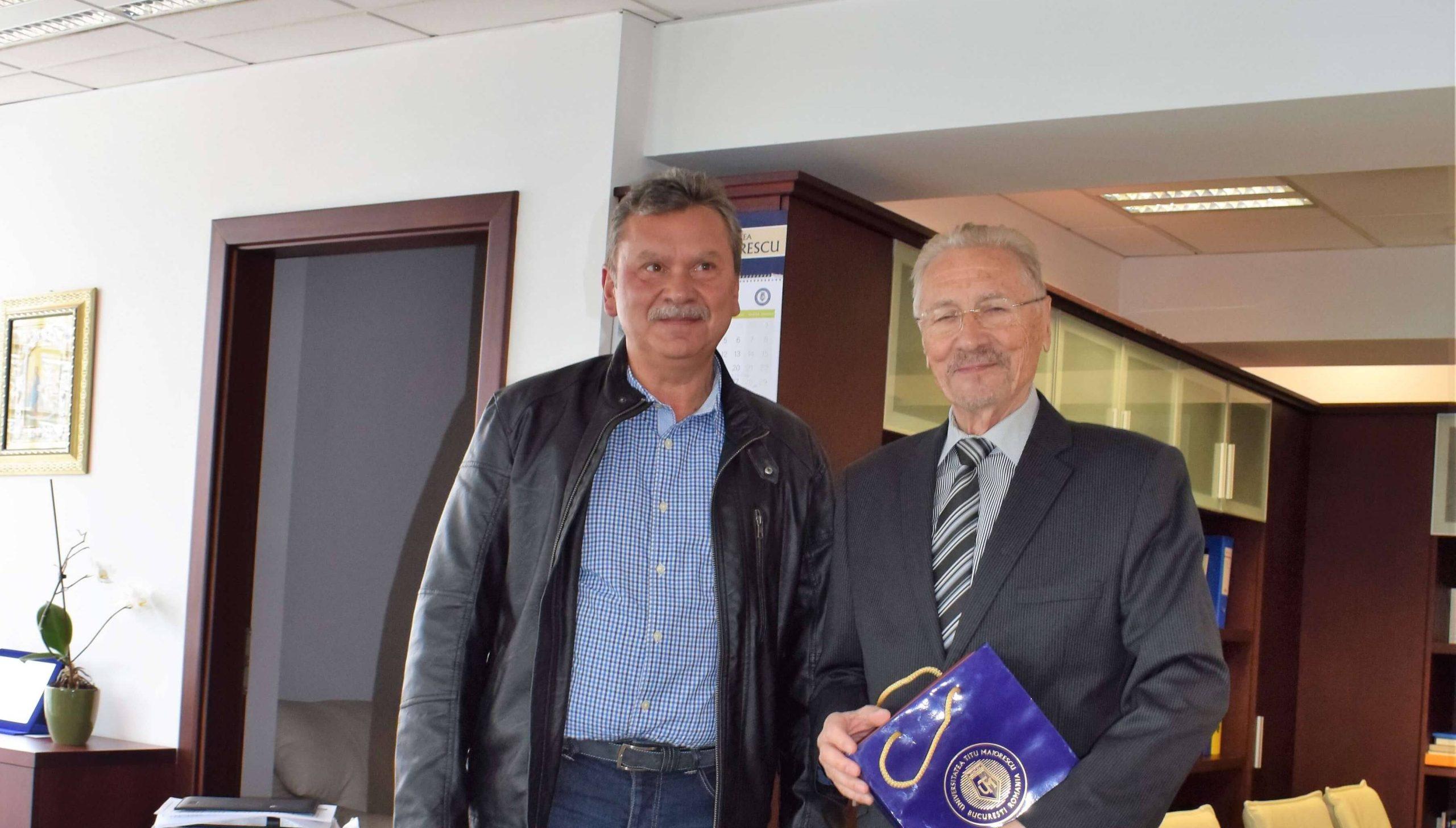 Profesorul Emil Constantinescu a avut o întrevedere cu The Rector of Titu Maiorescu University, University Professor Dr. Daniel Cochior, în cadrul căreia s-a desfășurat o discuție pe teme instituționale, privind Universitatea și ISACCL, și referitoare la evoluțiile din învățământul superior și din cercetare. Cadru didactic al Facultății de Geologie, profesorul Emil Constantinescu a fost profund implicat în procesele și evoluțiile din învățământul superior românesc, în calitate de Rector al Universității din București și de președinte al Consiliului Național al Rectorilor în perioada 1992-1996, înainte de a deveni președintele României. Rector Daniel Cochior i-a prezentat invitatului Universitatea Titu Maiorescu, în ceea ce privește structura, programele de studii, viziunea asupra educației și cercetării, rezultatele obținute, care o definesc drept o Universitate de calitate a României, dinamica dezvoltării. Președintele Constantinescu a vorbit despre importanța educației de calitate și a cercetării în dezvoltarea țării și a prezentat, la nivelul misiunii, obiectivelor și coordonatelor de activitate, Institutul de Studii Avansate pentru Cultura și Civilizația Levantului. Având în vedere punctele comune în activitatea celor două instituții cu privire la domeniul relațiilor internaționale, s-a cristalizat perspectiva creării unui parteneriat academic între Universitate și Institut.