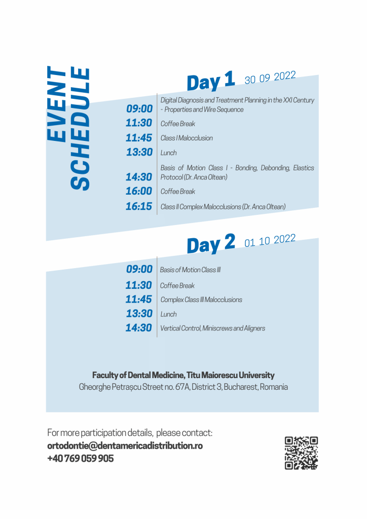 Cursul “The New Method of Treatment” organizat de Dent America Distribution cu sprijinul Facultății de Medicină Dentară din cadrul Universității Titu Maiorescu și Henry Schein Orthodontics va avea loc în perioada