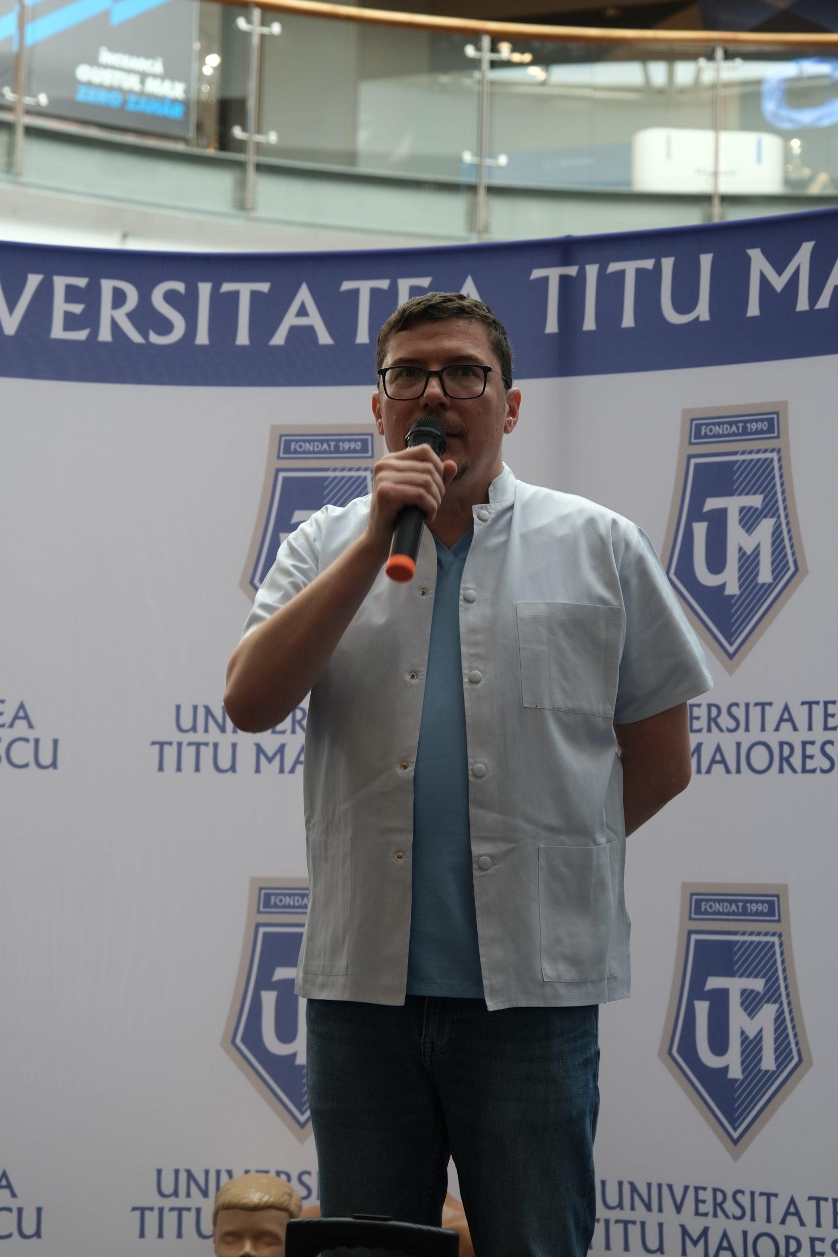 Along with the maiorescian academic collective was Mr. Conf. Univ. Dr. Cosmin Moldovan, The Dean of the Faculty of Medicine. The Dean mentioned in his speech that it is very important to prepare as well as possible to face emergency situations and to understand that resuscitation maneuvers are not reserved only for medical personnel and that any trained person can intervene in a critical situation if they know how to apply the standard Basic Life Support protocol.