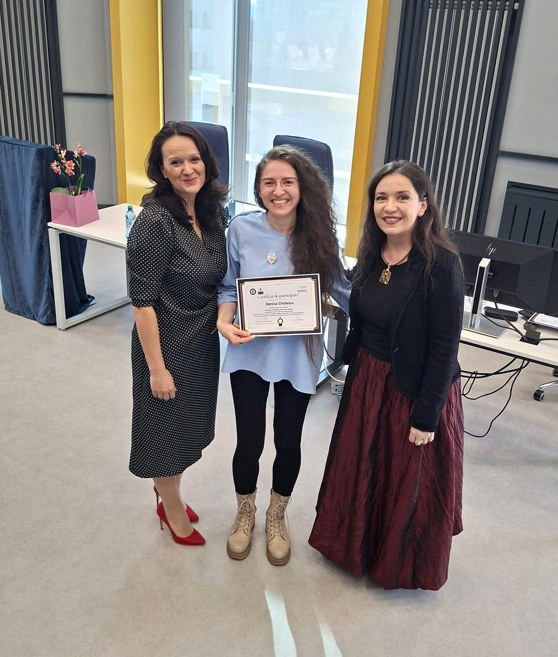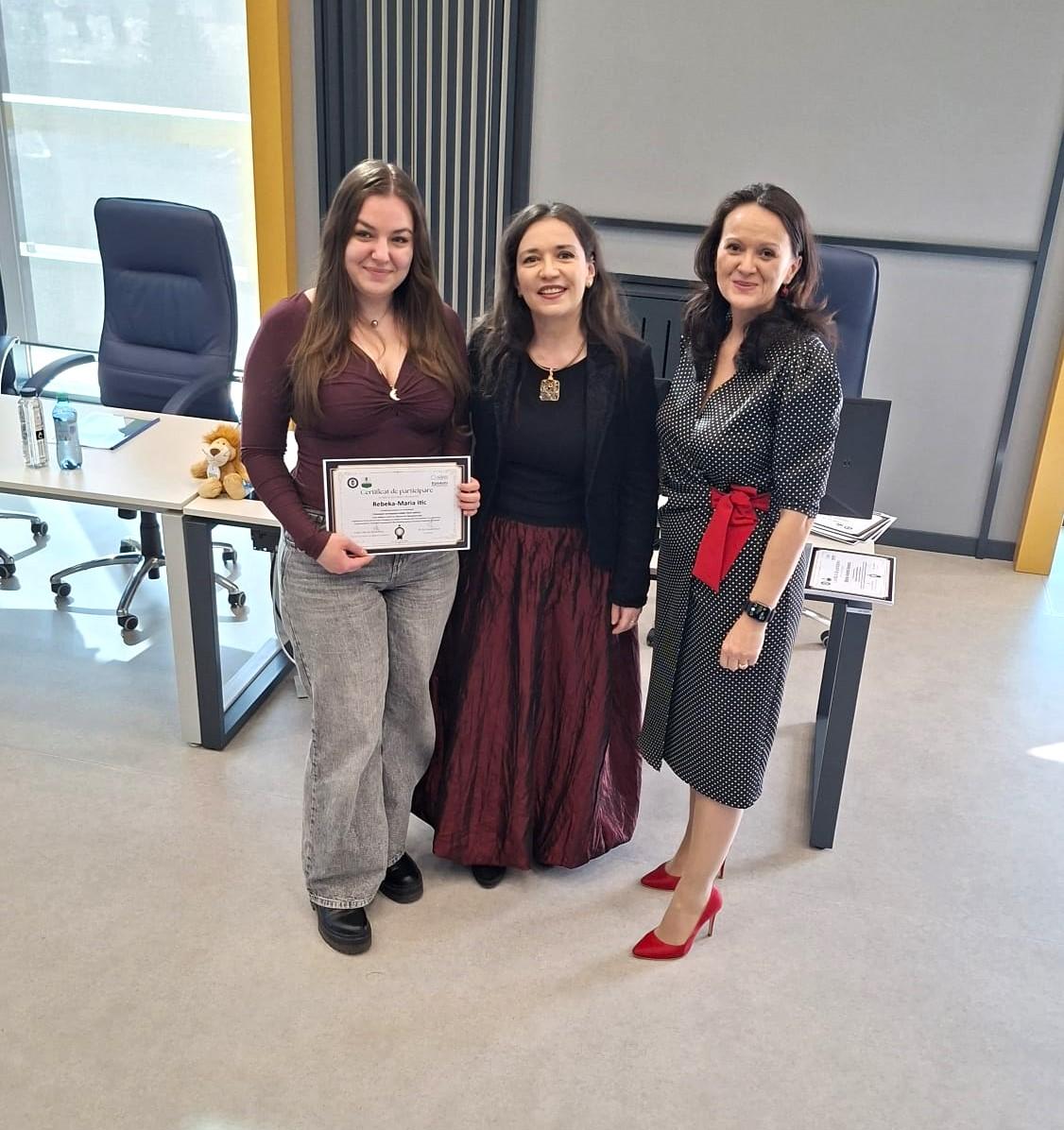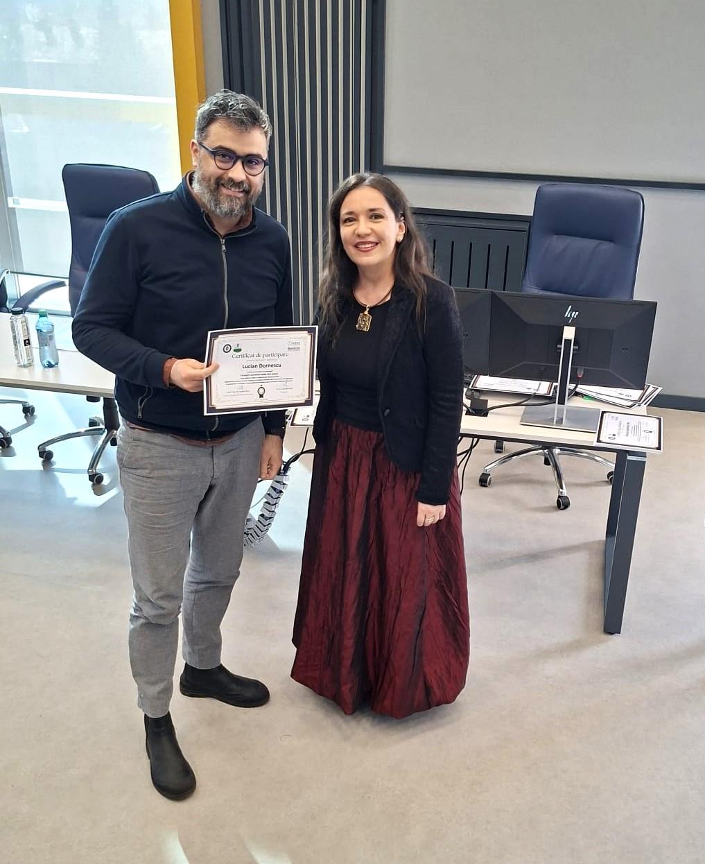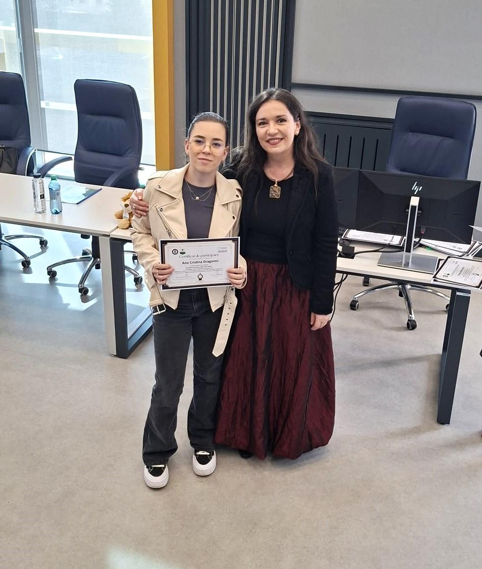 Adresăm mulțumiri deosebite formatorului Lorelai Sacal – consultant în finanțări nerambursabile și formator cu peste 20 de ani de experiență – pentru modul clar, aplicat și profesionist în care a ghidat discuțiile și a oferit studenților repere utile pentru înțelegerea mecanismelor de evaluare a proiectelor.