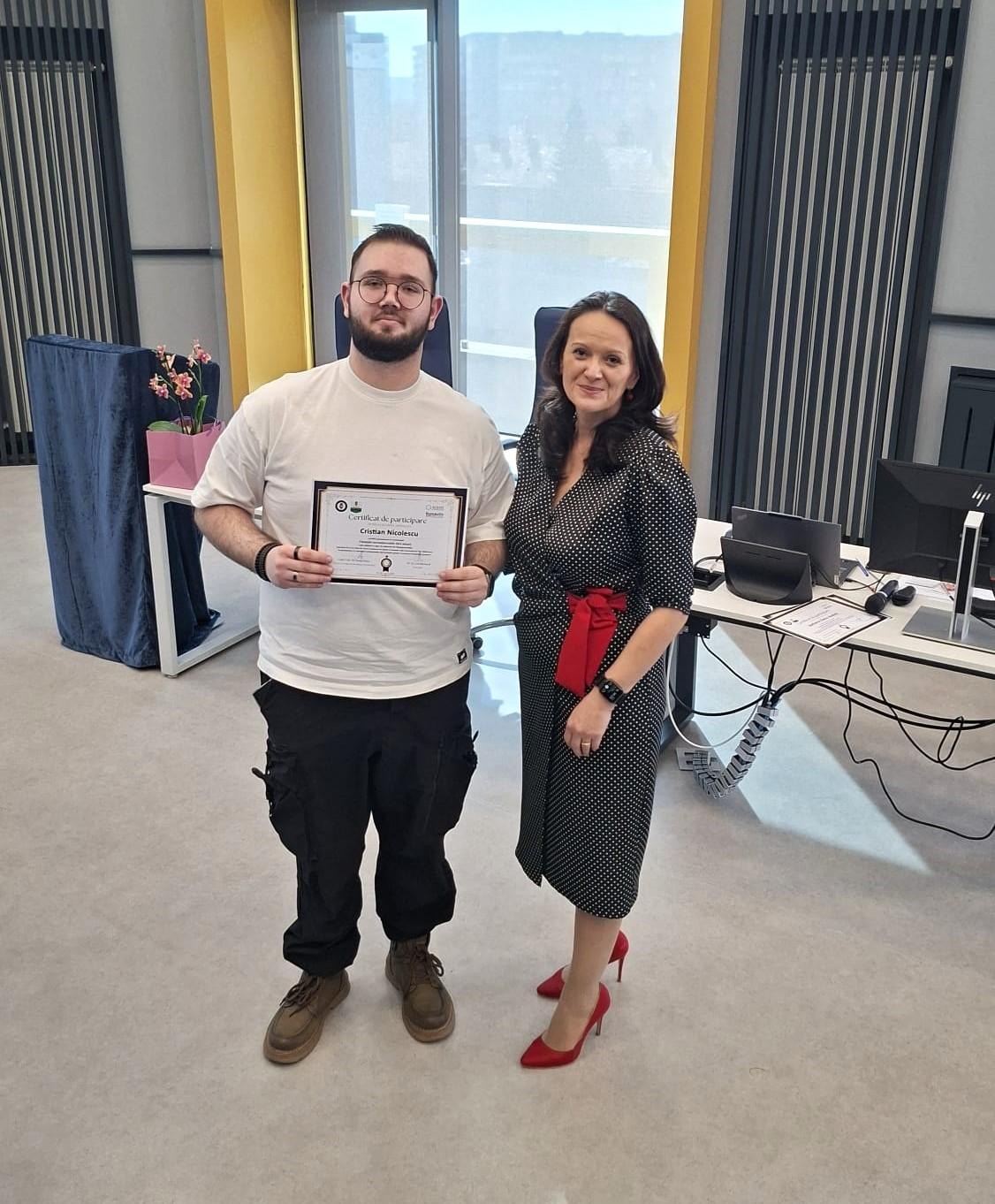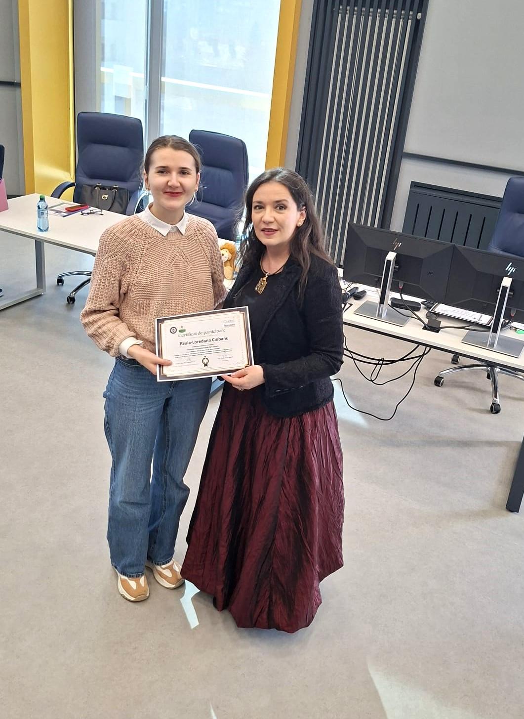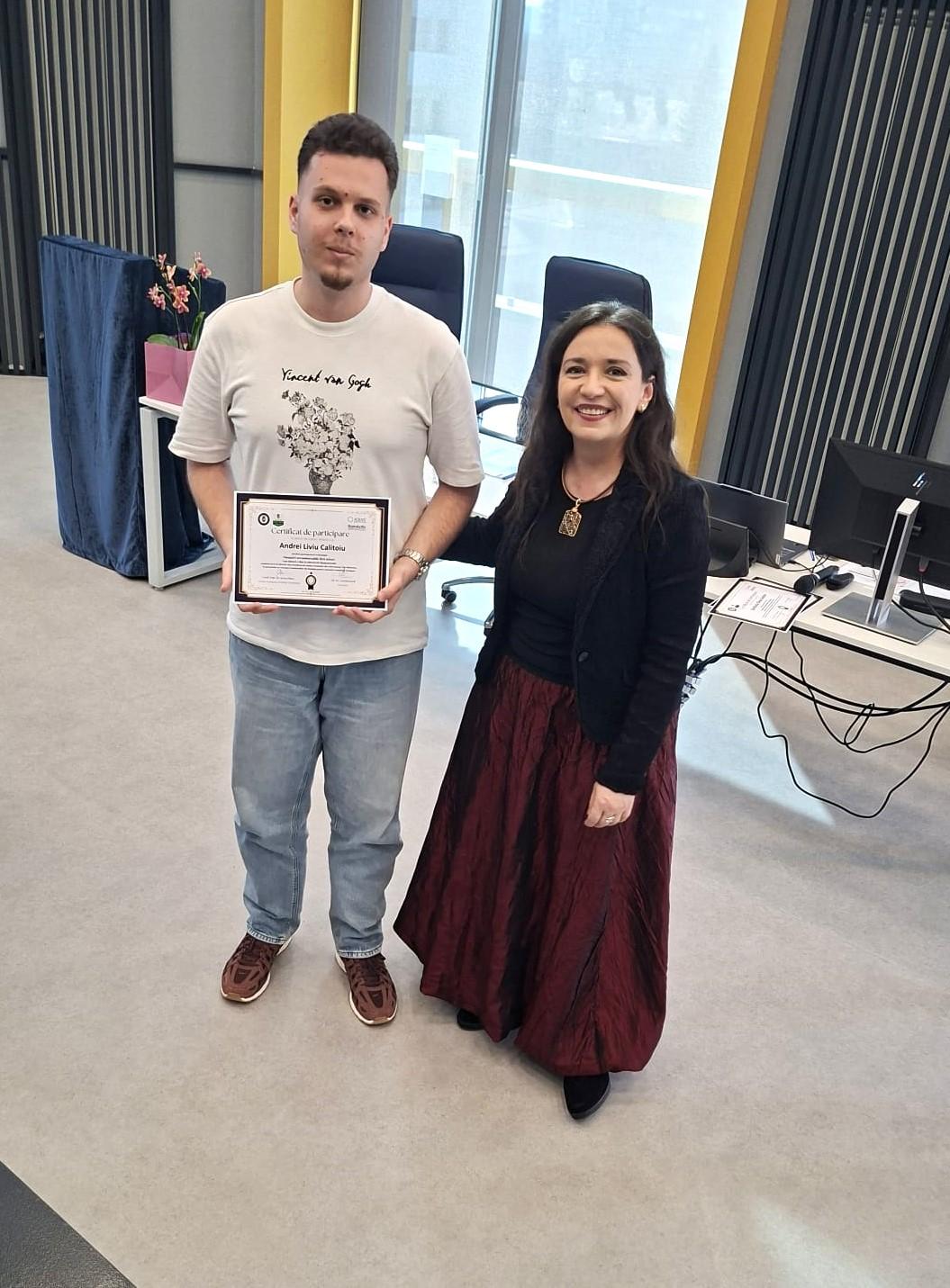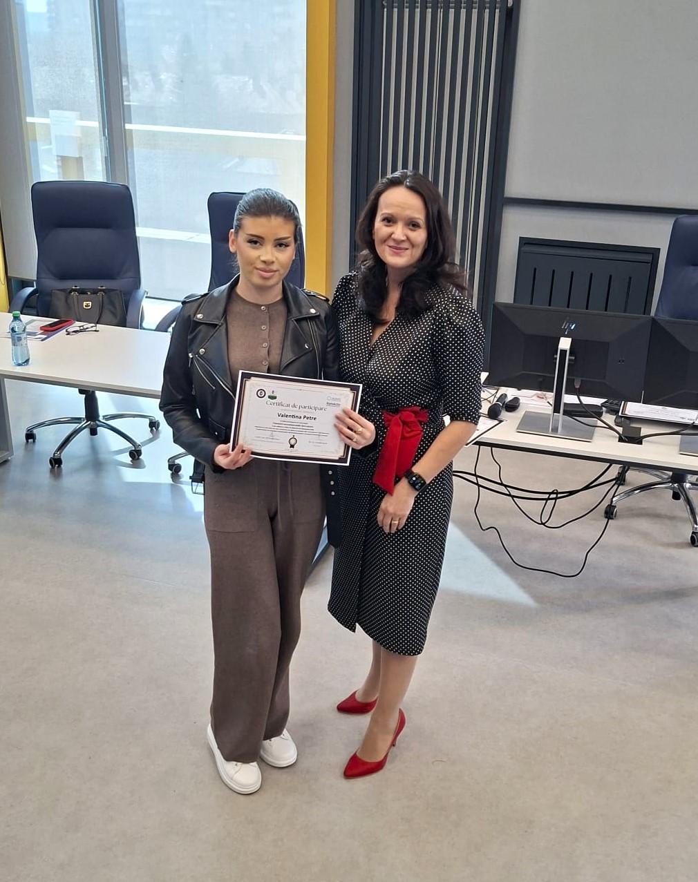 Adresăm mulțumiri deosebite formatorului Lorelai Sacal – consultant în finanțări nerambursabile și formator cu peste 20 de ani de experiență – pentru modul clar, aplicat și profesionist în care a ghidat discuțiile și a oferit studenților repere utile pentru înțelegerea mecanismelor de evaluare a proiectelor.