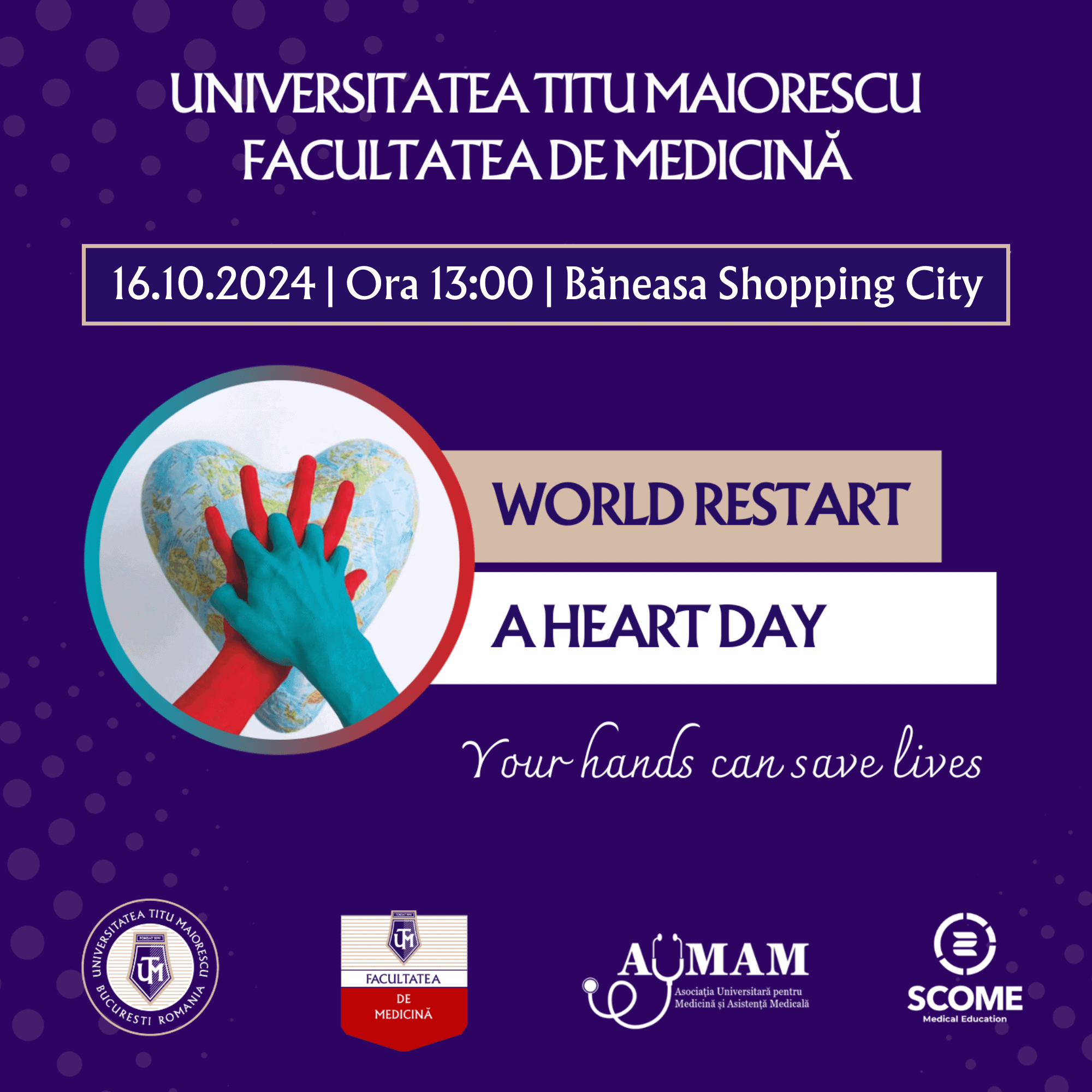 Faculty of Medicine din cadrul Universității Titu Maiorescu din București vă invită să participați pe data de 16 octombrie 2024 la o serie de ateliere gratuite de Suport Vital de Bază (BLS) in Băneasa Shopping City. Prima ediție a acestui proiect s-a bucurat anul trecut de un succes răsunător așadar, vă invităm anul acesta la o nouă ediție în care aveți opotunitatea să învățați de la medici și studenți mediciniști: tehnci și manevre de prim ajutor.