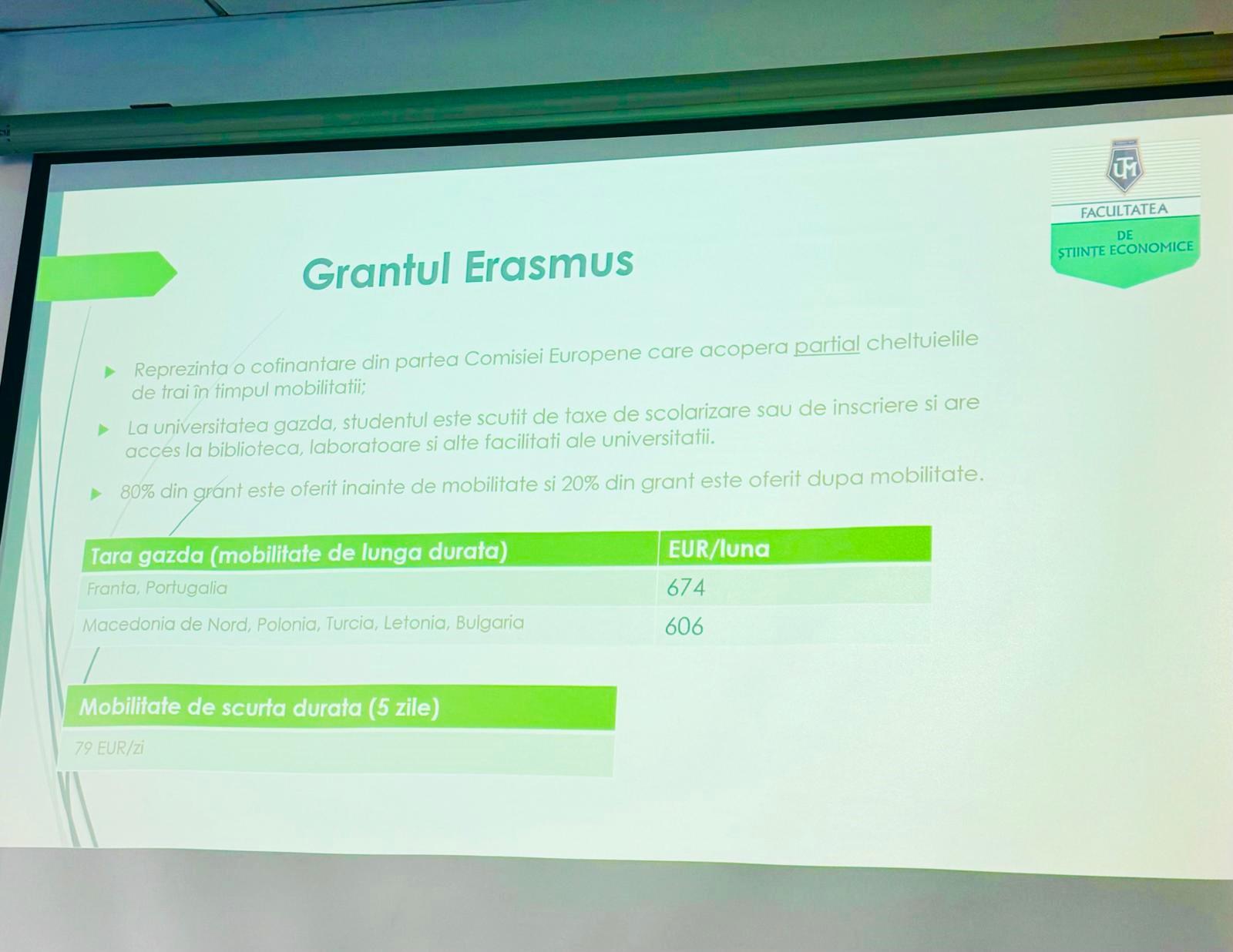 Luni, 9 martie 2026, studenții din anul I ai Facultății de Științe Economice au avut ocazia să descopere Programul Erasmus și numeroasele oportunități pe care acesta le oferă.