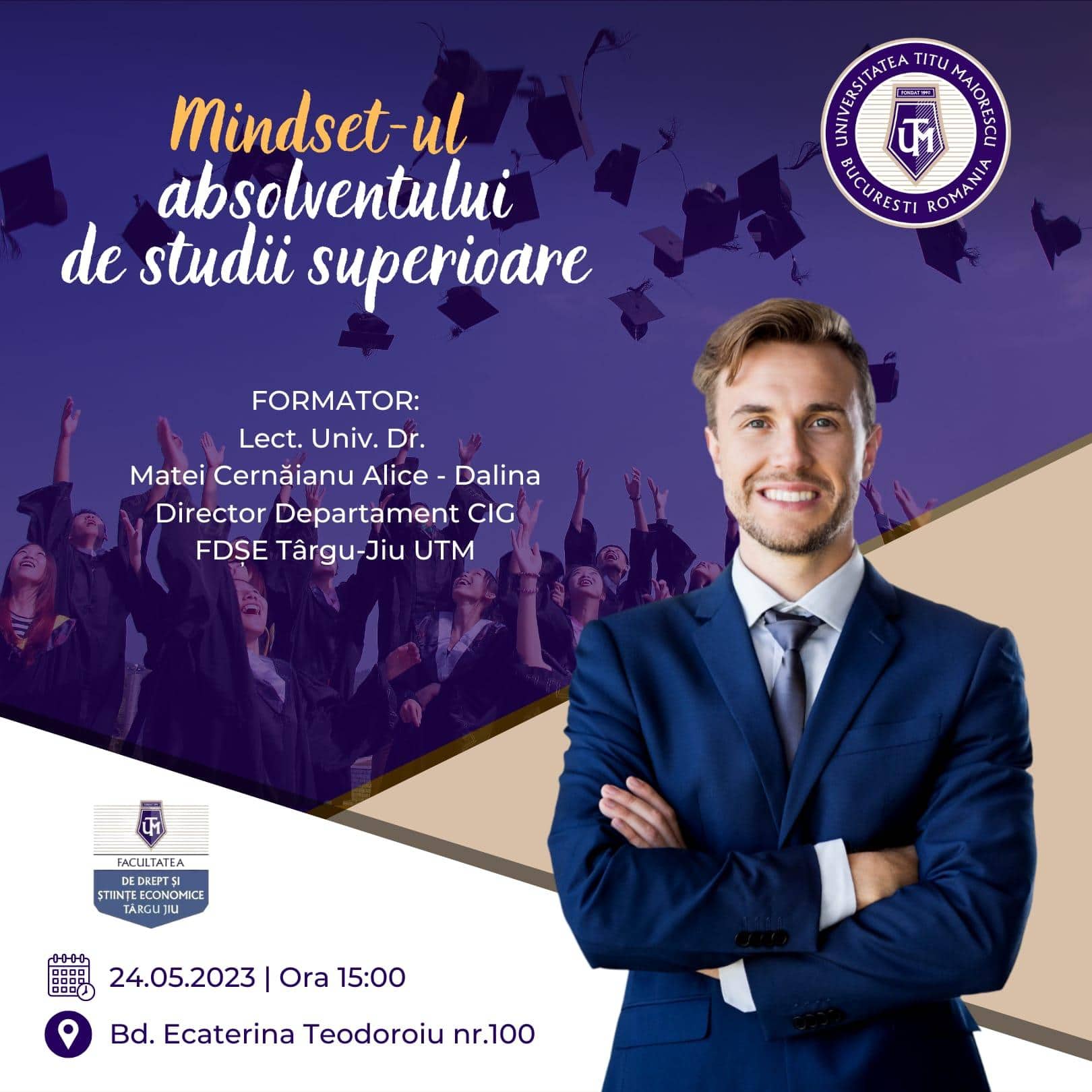 Workshop – Mindset-ul absolventului de studii superioare Pe data de 24.05.2023 la ora 15:00, Facultatea de Drept și Științe Economice din cadrul