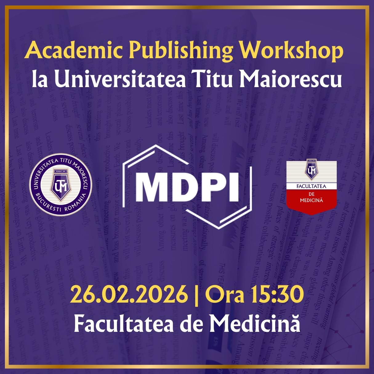 Academic Publishing Workshop la Universitatea Titu Maiorescu 📅 26 Februarie 2026, 15:30 📍 Universitatea Titu Maiorescu, Facultatea de Medicină București Beneficiile Modelului de Publicare cu