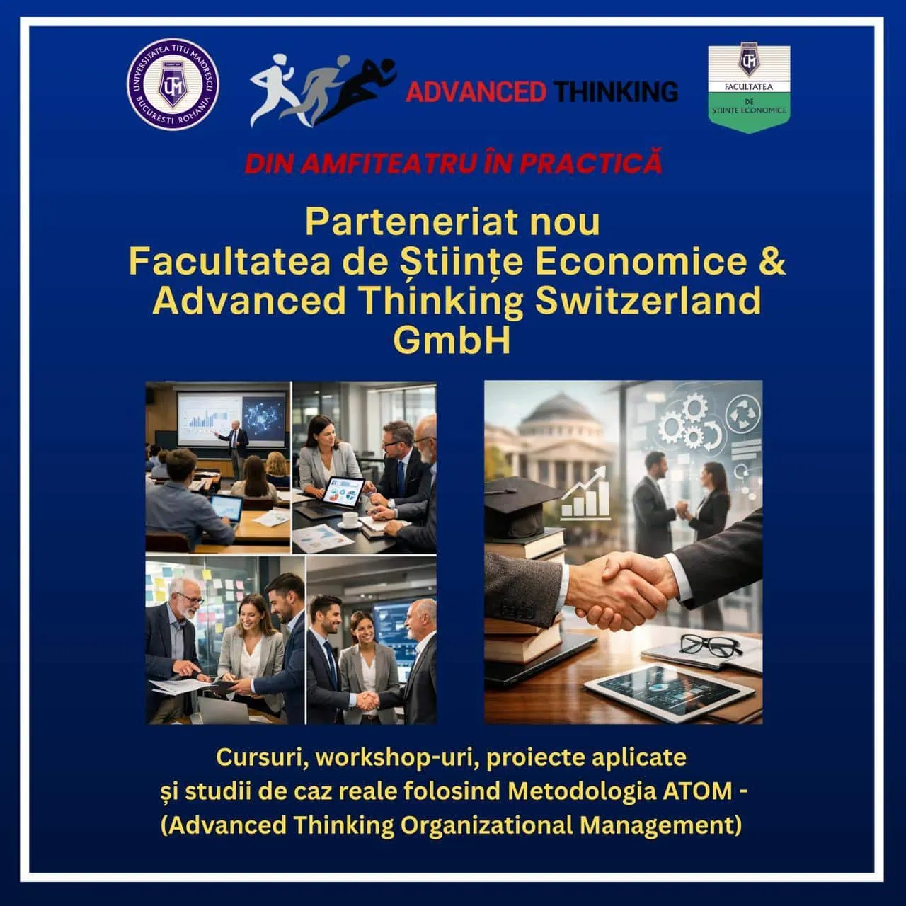 Colaborarea permite integrarea în procesul didactic a metodologiei ATOM (Advanced Thinking Organizational Management), utilizată în seminarii, aplicații practice și studii de caz.