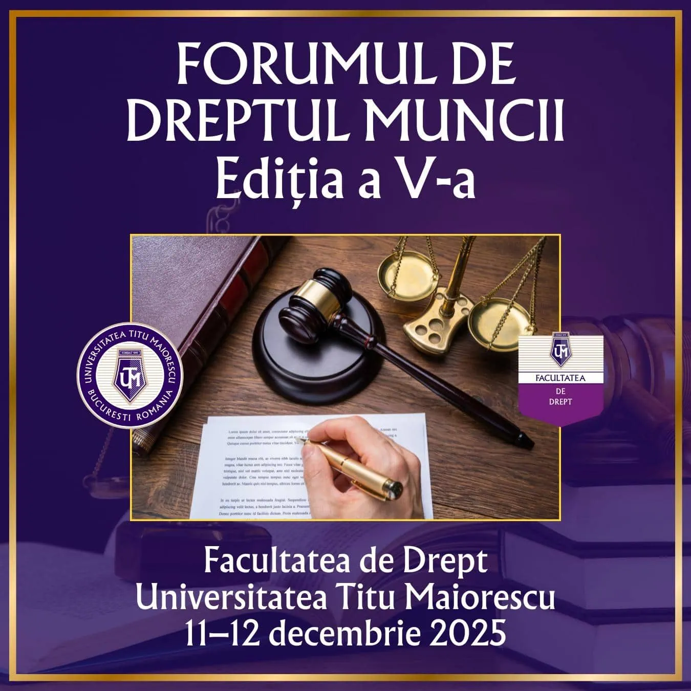 Mâine, 11 decembrie la Facultatea de Drept a Universității „Titu Maiorescu”, încep dezbaterile din cadrul Forumul de Drept al Muncii – ediția a V-a, dedicate provocărilor actuale din legislația muncii!