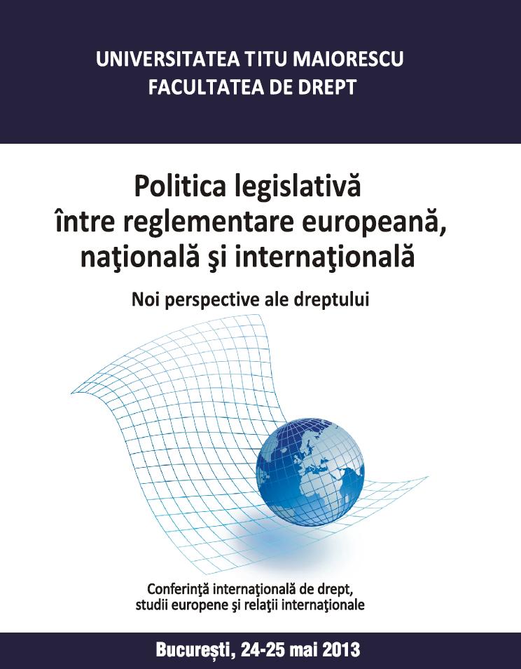 The conference will be held in Bucharest, at the Faculty of Law, Titu Maiorescu University, 187 Calea Vacaresti, sector 4.