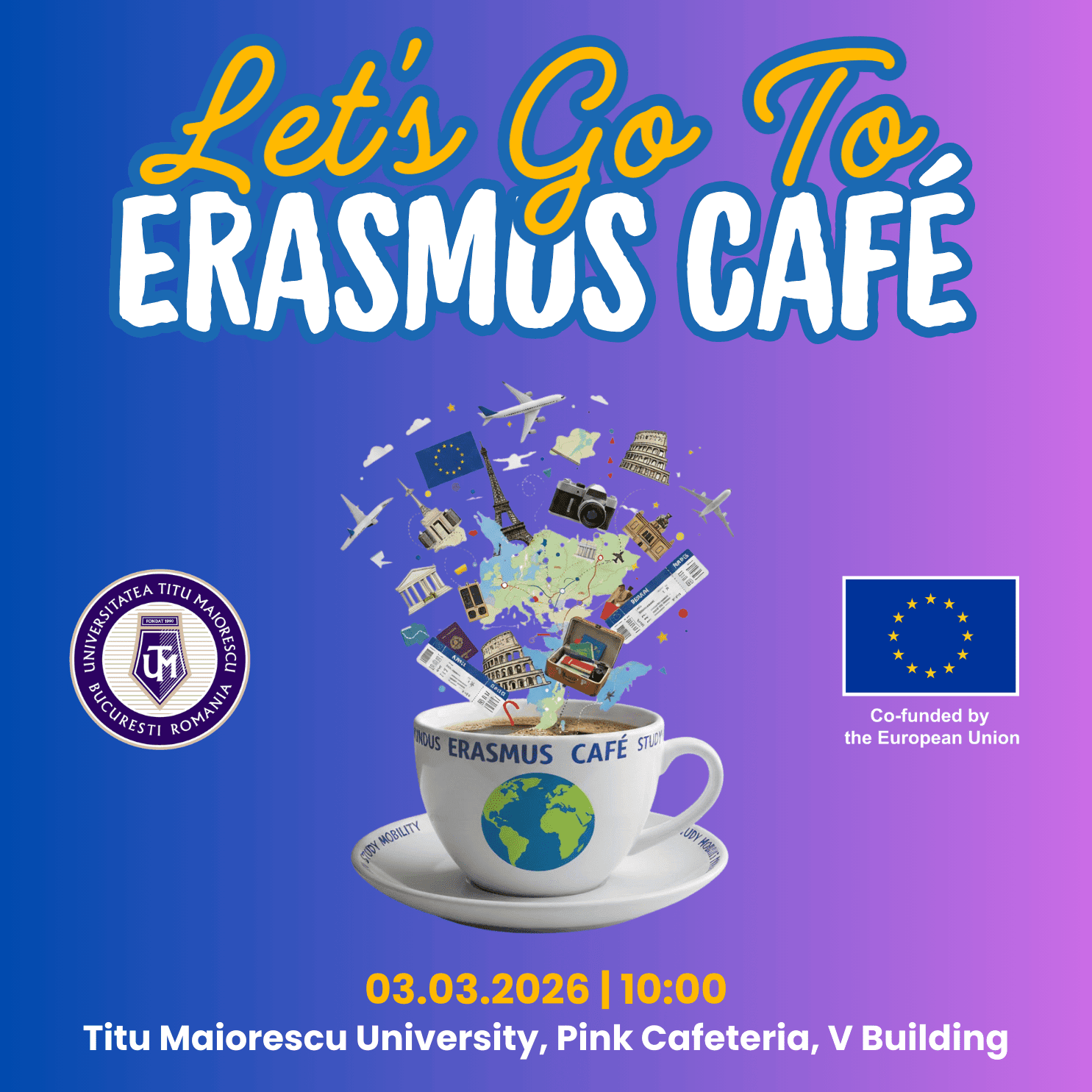 Erasmus Café 3 martie 2026 Universitatea Titu Maiorescu vă invită la Erasmus Café, un eveniment dedicat tuturor celor interesați de Programul Erasmus+. Veți avea