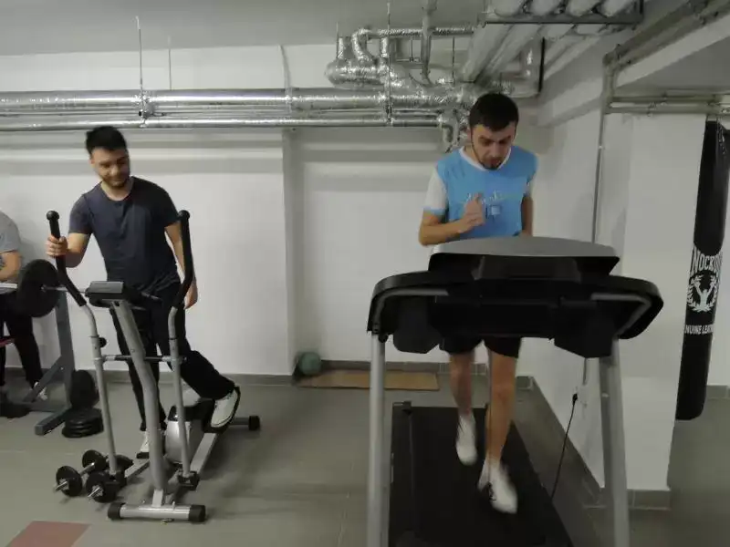 Sala de sport dispune de aparatură pentru exerciții de fitness precum: bandă de alergare, gantere de diferite greutăți, dar și alte echipamante sportive pentru activități relaxante de tip ping pong sau box. Tot aici, găsiți și un spațiu pentru cei care doresc să facă exerciții fizice precum pilates sau aerobic.