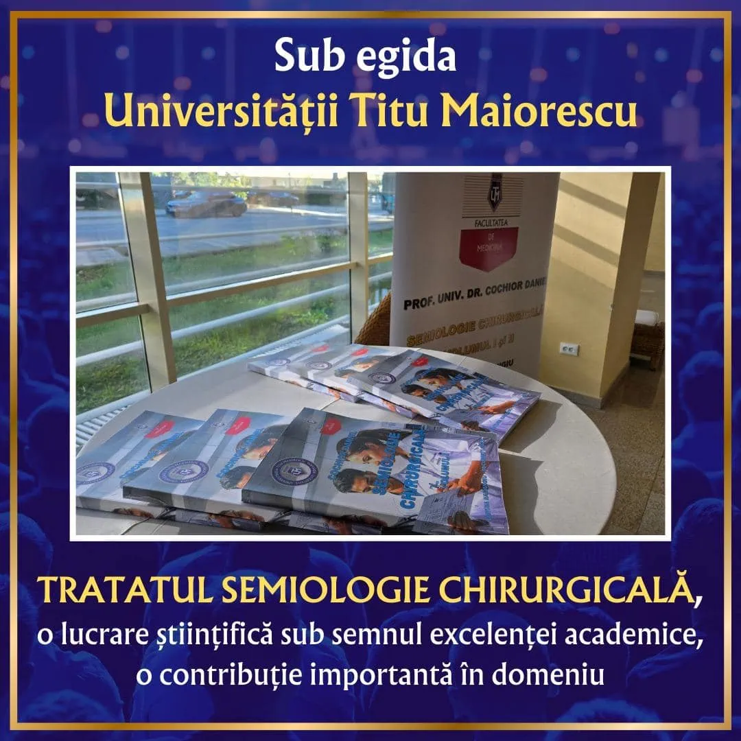 În cadrul reuniunii academice desfășurate de Universitatea Titu Maiorescu în stațiunea Olimp, la Hotelul Cocor Spa, în perioada 28 august – 31 august, a avut loc lansarea unei lucrări științifice de excepție: Tratatul Semiologie Chirurgicală, Vol. I și II, realizat de: Prof. univ. dr. Daniel Cochior, Rectorul Universității Titu Maiorescu, Conf. univ. dr. Cosmin Moldovan, Decanul Facultății de Medicină, Șef de Lucrări Dr. Daniel Kraft și apărut la Editura Hamangiu, 2025