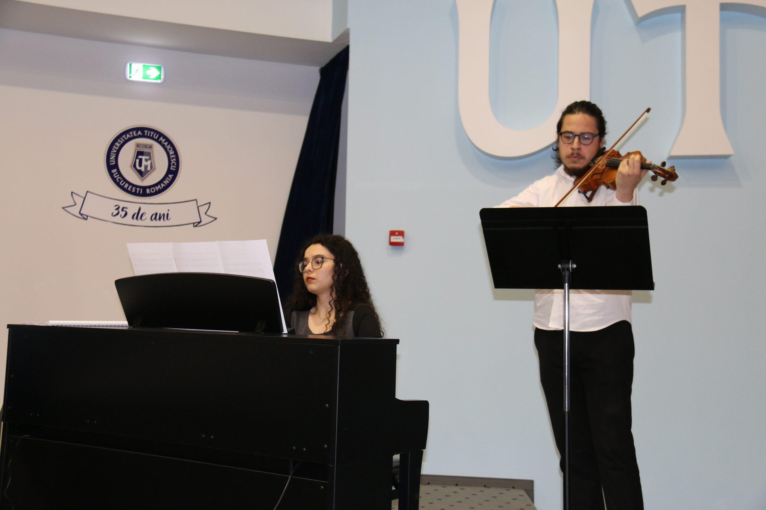 Manifestarea a cuprins și un recital muzical, susținut de Emanuela Ioniță, studentă, anul IV, pian, la Universitatea Națională de Muzică, și Damian Radu Florescu, student, anul III, vioară, la aceeași prestigioasă Universitate.