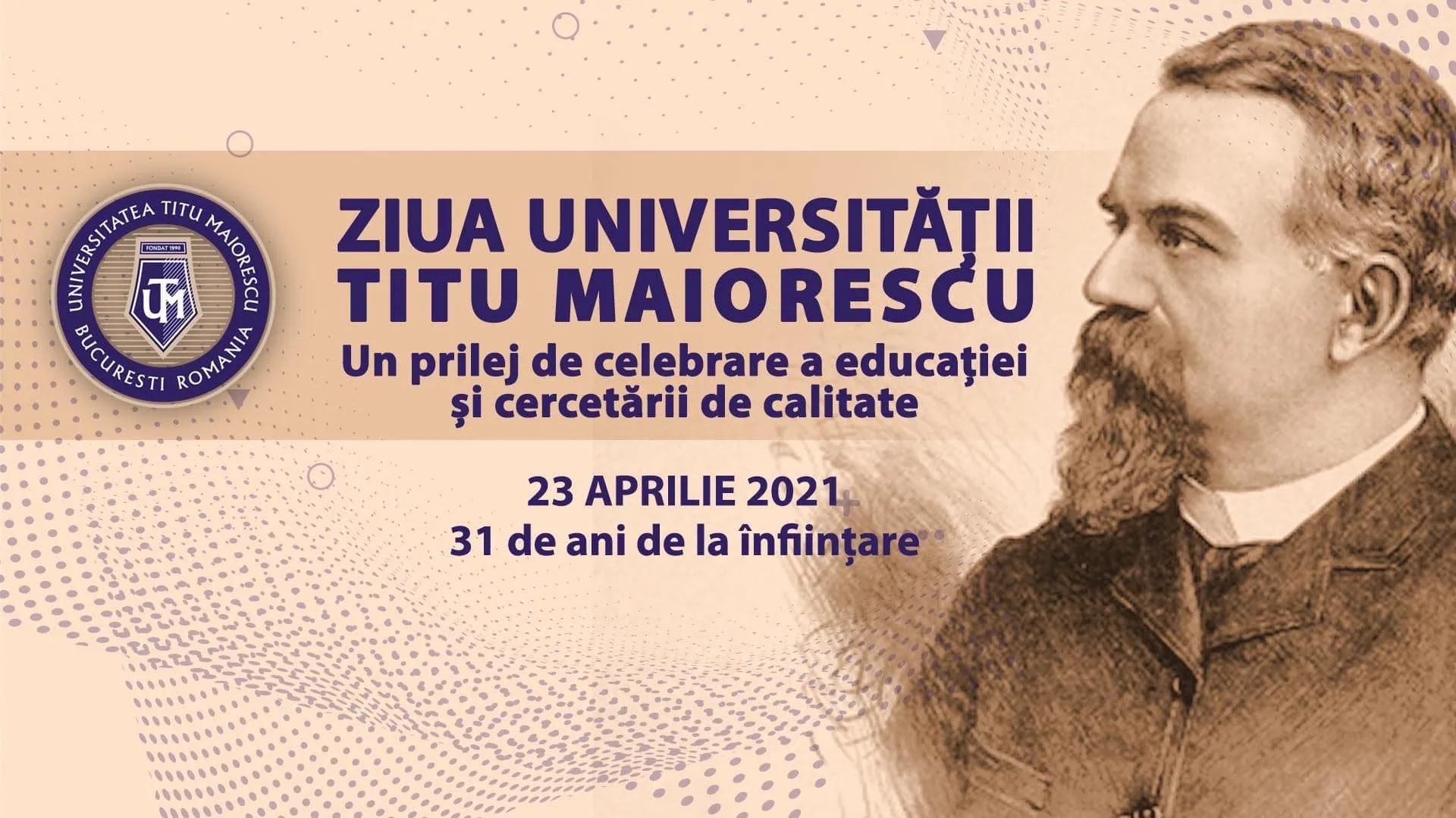 În data de 23 Aprilie 2021, Universitatea Titu Maiorescu din București împlinește 31 de ani de la înființare. Ziua Universității constituie un cadru al bucuriei și al celebrării, dar, în același timp, și al reflecției la misiunea sa instituțională, la rolul educației și al cercetării în dezvoltarea societății.